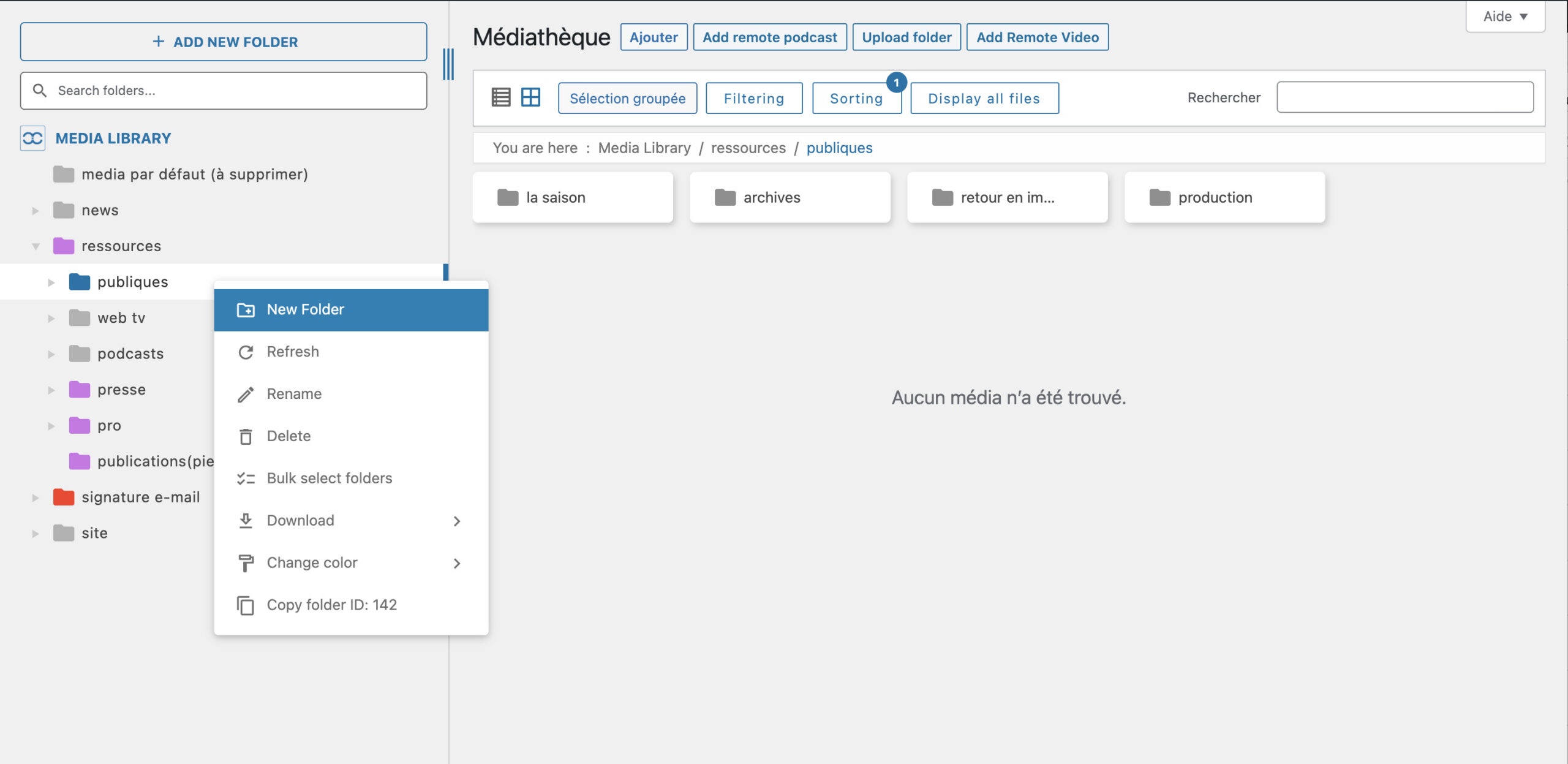 NB : Il est également possible de créer un dossier en faisant un click droit sur le dossier dans lequel on veut ajouter un sous-dossier :