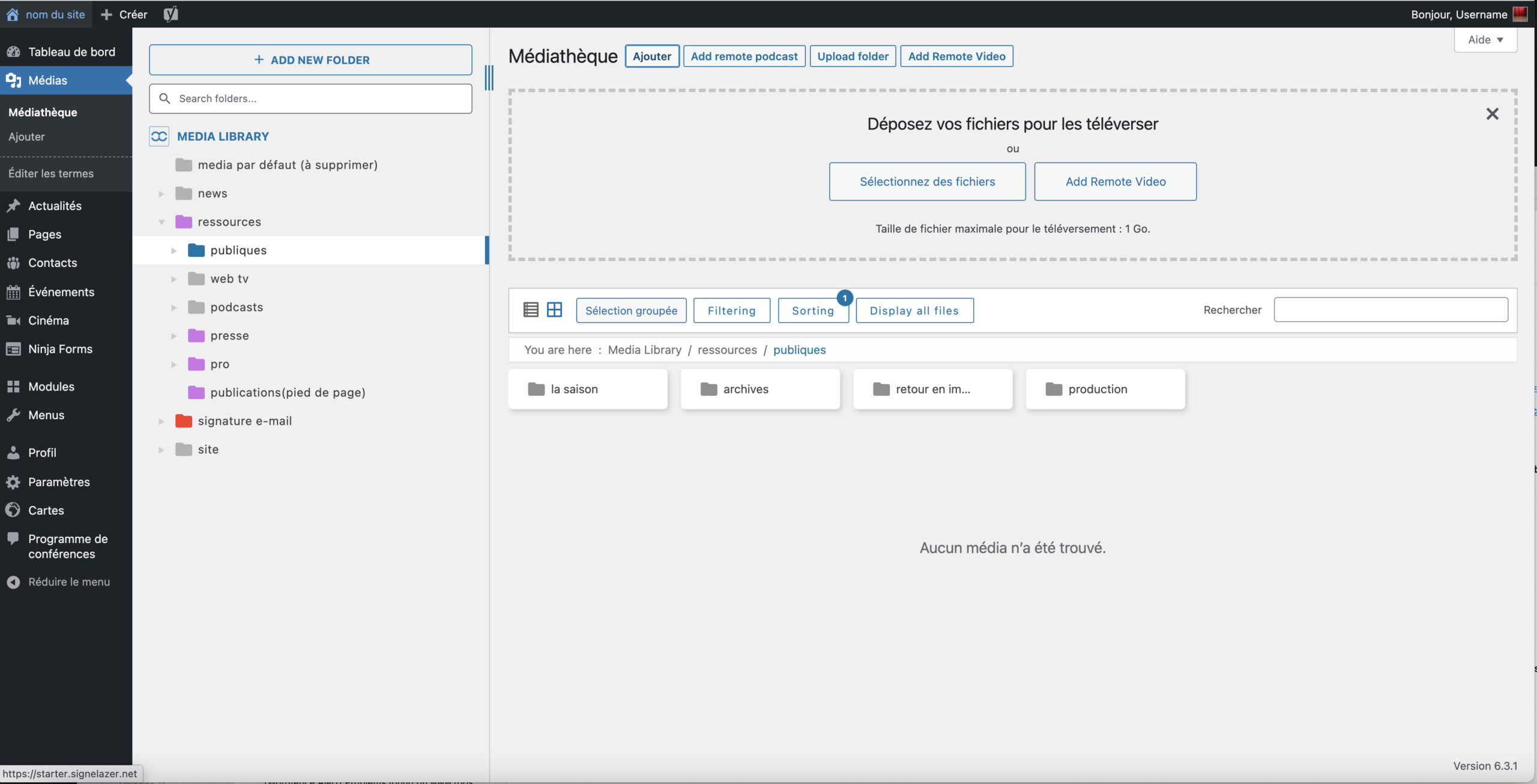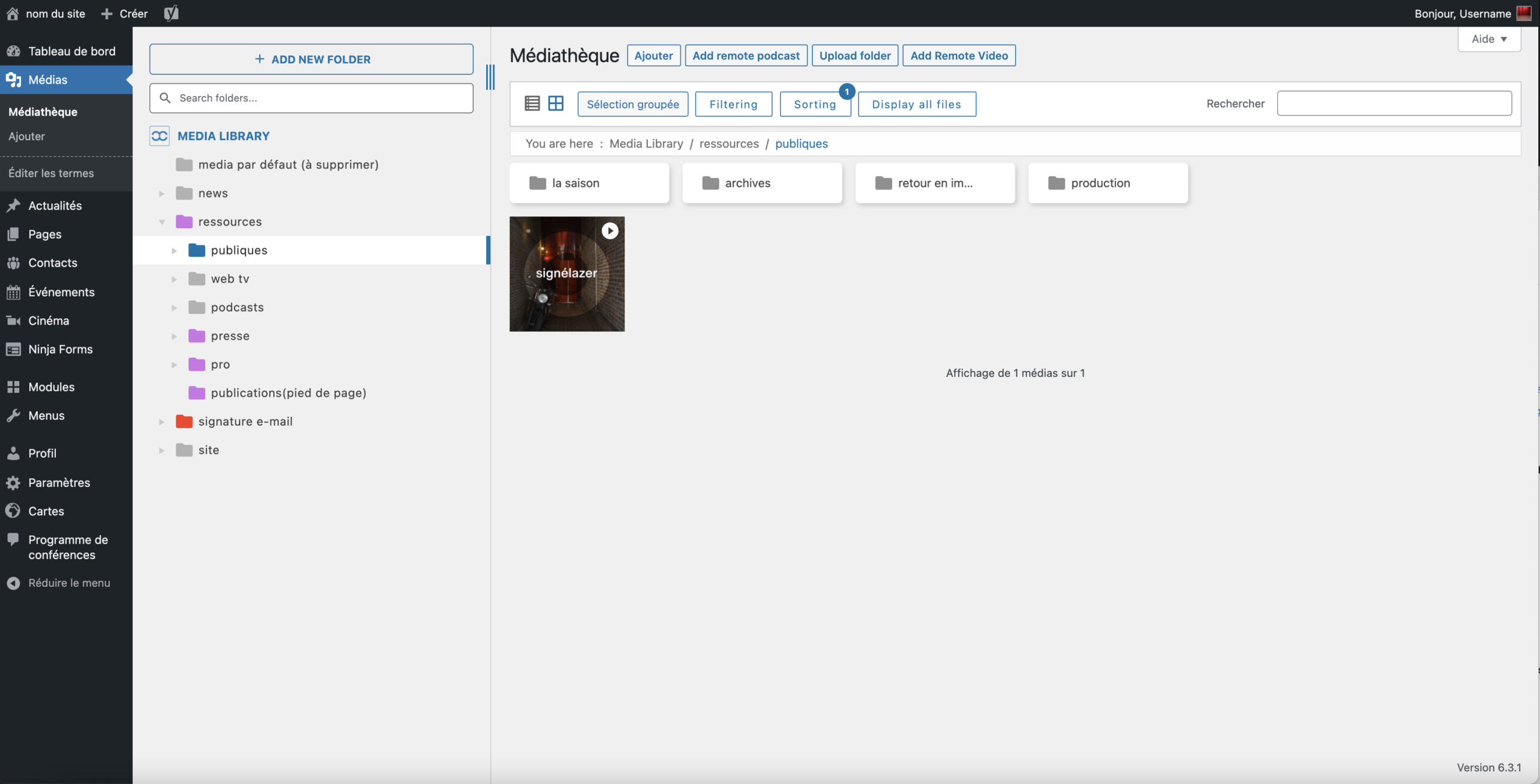 – Site regroupe les médias utilisés aux différents endroits du site. Il est composé de dossiers qui reprennent le nom des pages ou des types de publications dans lesquelles les médias sont utilisés.