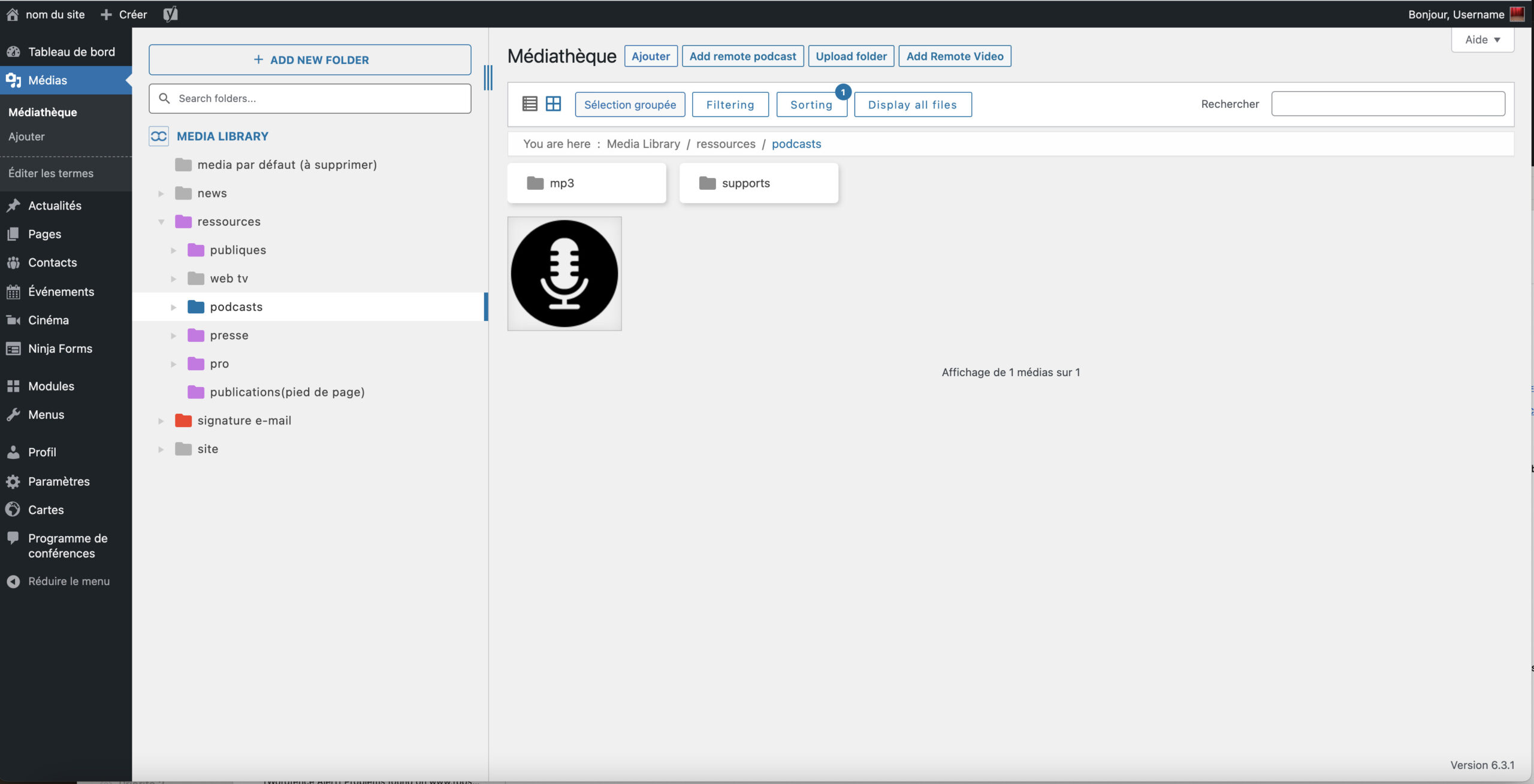 1 – Créer un dossier (ex : Nom de la série de podcast) dans le dossier podcast (ceci va créer la catégorie « Nom de la série de podcast » dans les podcasts).
