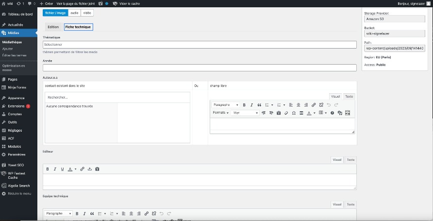 Auteurs liaisons possibilité d’associer une fiche contact à un média. Ajouter un contact.