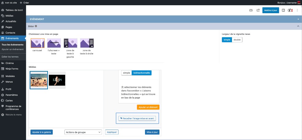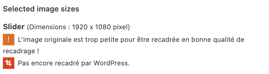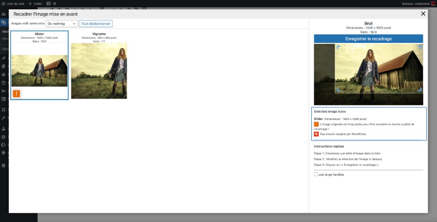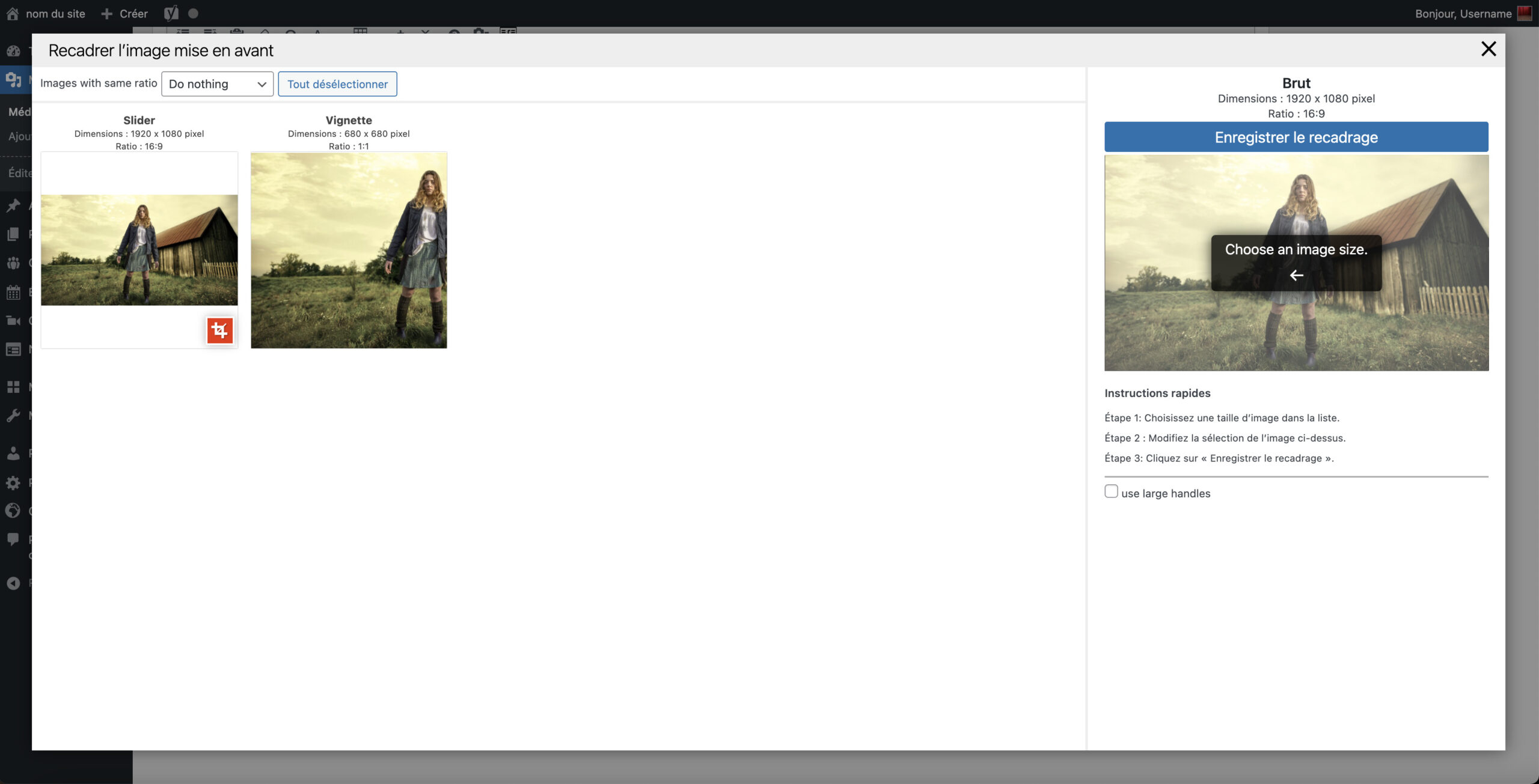 Sélectionner le format à recadrer (vignette, slider, …) :