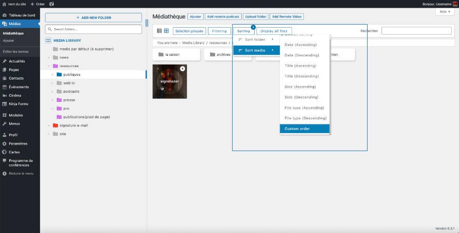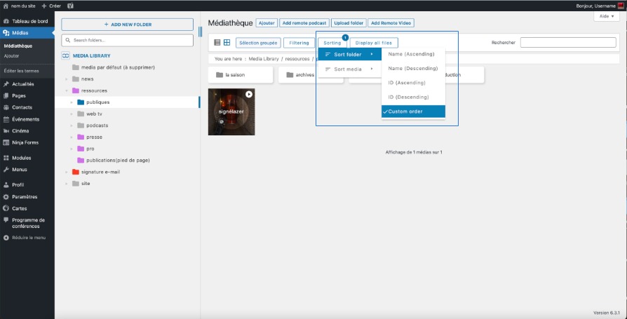 2 – Cliquer sur Sorting Sort folder Custom order.
